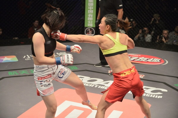 26일 오후 중국 상해 동방체육관에서 열린 '샤오미 로드FC 027 In China' 1부 2경기 여성부 스트로급 매치에서 남예현은 투혼을 발휘했지만 얜시아오난의 풍부한 경험과 노련미를 앞세운 경기 운영에 패하고 말았다.