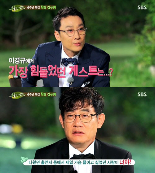 이경규는 "나왔던 출연자 중 제일 가슴 졸이고 싫었던 게스트는 너다"고 말해 웃음을 자아냈다.