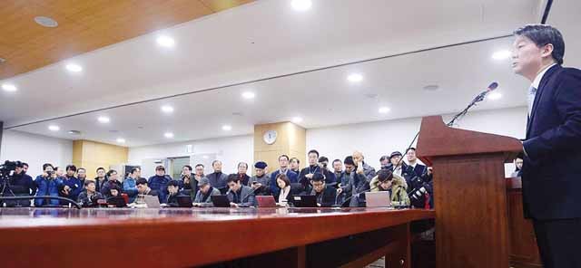 신당 창당을 선언한 무소속 안철수 의원이 27일 서울 국회 의원회관에서 열린 새정치 기조 관련 기자회견에서 취재진의 질문에 답변하고 있다.