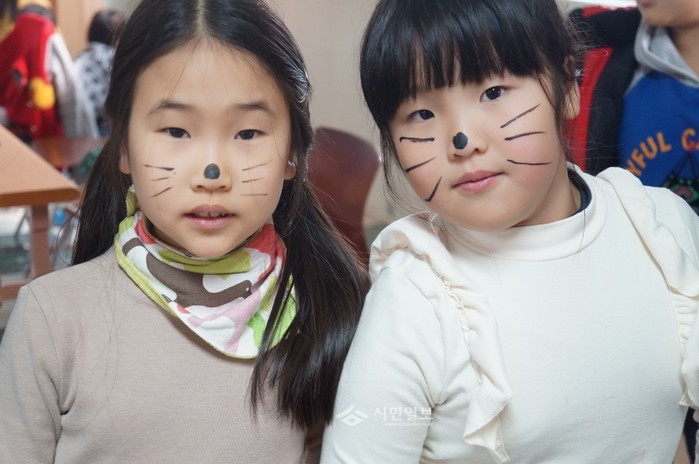 경기 가평 연하초등학교에서는 지난 24일 교내에서 '2015 동아리 발표회'를 진행했다. 사진은 발표회에 참석한 학생들이 페이스페인팅을 체험한 후 기념촬영을 하는 모습.(사진제공=가평 연하초등학교)