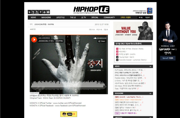 한편 주헌이 속한 그룹 몬스타엑스는 MMA에 이어 MAMA, 아이치이 까지 한-중 시상식을 휩쓸며 2015년 최고의 핫 루키다운 행보를 지속하고 있다.