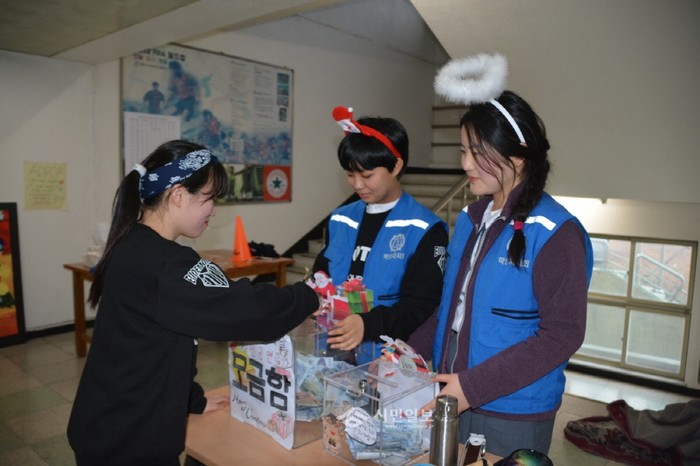 경북 구미여자고등학교는 최근 교내 강당에서 '제4회 백합의 날' 행사를 열었다. 사진은 행사에 참여한 학생들이 불우이웃 돕기 성금 모금 활동을 하는 모습.(사진제공=구미교육지원청)