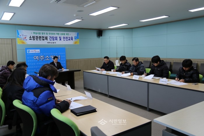 경기 여주소방서는 29일 청렴도 향상 및 안전문화 정착을 위해 소방공사업체를 대상으로 간담회를 개최했다고 밝혔다. 사진은 간담회에 참석한 관계자들이 토론을 하는 모습.(사진제공=여주소방서)