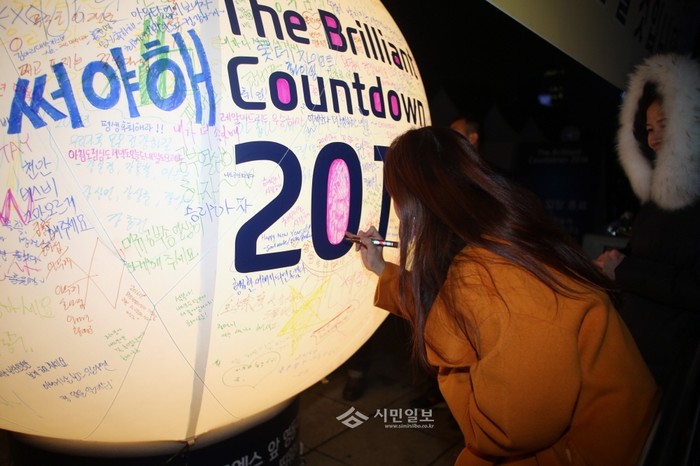 강남구는 최근 '2016 새해맞이 카운트다운 축제(더 브릴리언트 카운트다운 2016)'를 진행했다. 사진은 행사에 참석한 시민들이 위시볼에 새해 소원을 적는 모습.(사진제공=강남구청)