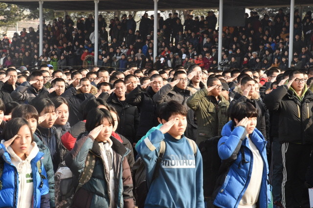 육군훈련소 새해 첫 입영행사가 4일 오후 충남 논산훈련소에서 열려 여군 부사관 후보생 및 입영장병들이 경례를 하고 있다.