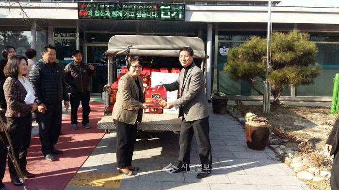 지난 4일 한국추출가공협회 여주시지부에서는 신년 새해를 맞아 어려운 이웃에게 전해 달라며 배즙과 호박즙 100상자를 여주시 보건소에 전달했다.(사진제공=여주시청)