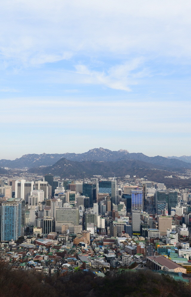 북서쪽에서 불어온 찬바람의 영향으로 미세먼지가 보통수준을 나타내고 있는 5일 오전 서울 남산에서 바라본 도심이 맑은 모습을 나타내고 있다.