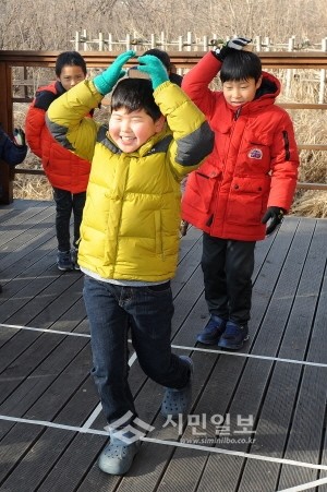 지난 5일 오전 겨울방학을 맞이해 서울 송파구 방이생태학습관에서 열린 '방이습지에서 놀자' 프로그램에 참가한 어린이들이 사방치기, 비석치기, 고리던지기 등의 전통놀이를 하고 있다.(사진제공=송파구청)