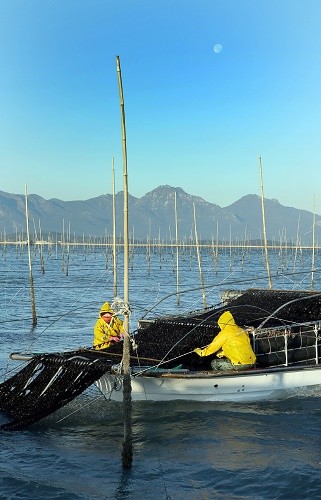 | ▲ 사진, 청정해역 강진만에서 무산김을 채취하고 있는 어민들 | ||