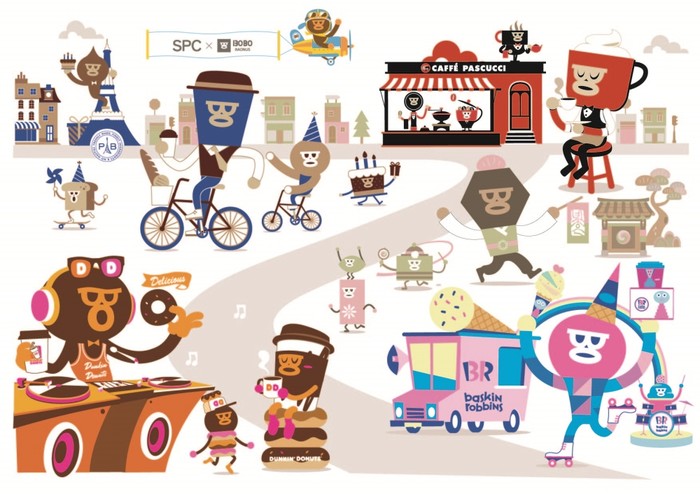 BO원숭이는 신진 아트토이 작가 정웅이 알파벳 ‘BO’를 원숭이 얼굴 모양으로 형상화해 창작한 캐릭터로 SPC그룹과의 협업을 통해 파리바게뜨, 배스킨라빈스, 던킨도너츠, 파스쿠찌, 빚은 등 브랜드 별로 개성을 담아 새롭게 선보였다.