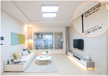 | ▲ 사진설명 : 1~2층 천장고를 2.7m로 높여 특화 시킨 안성 푸르지오 전용 59㎡ 거실 | ||