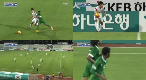 전반 25분 대표팀은 빠른 역습을 통해 수적 우위 상황을 연출했지만 슈팅 기회로 이어지지 않았다. 사우디 또한 빠른 역습을 시도했지만 선수들끼리의 호흡이 맞지 않았다.