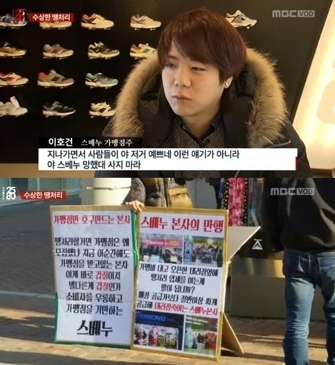 11일 '시사매거진 2580'에서는 한 가맹점주가 '가맹점을 호구 만드는 본사'라는 팻말을 들고 1인시위를 하는 모습이 담겨졌다. 해당 팻말에는 '땡처리할거면 가맹점은 왜 모집했냐. 지금 이 순간에도 가맹점을 받고 있는 본사. 이게 바로 갑질이지 별다른게 갑질인가. 소비자를 우롱하고 가맹점을 기만하는 스베누'라고 쓰여 있어 이목을 집중시켰다.