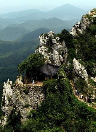 | ▲ 사진, 기암괴석 사이를 매립해 마치 하늘에 있는 듯 축조된 도솔암, 신비로움과 기묘함이 잘 어울려 영화, 드라마, 광고 촬영지로 각광을 받고 있다. | ||