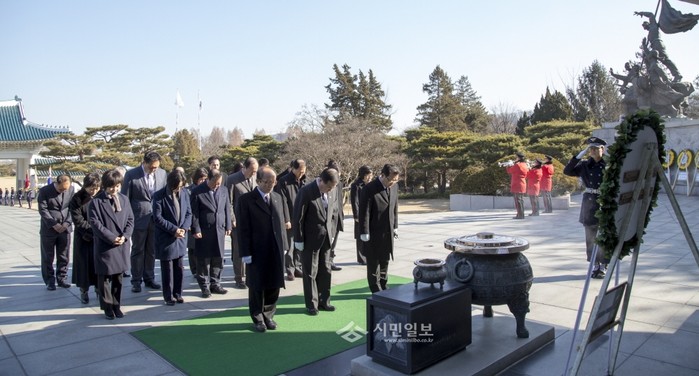 서울 서초구의회는 지난 8일 오전 11시30분 동작동 국립현충원을 방문했다. 사진은 구의원들이 현충탑에서 참배하는 모습.(사진제공=서초구의회)