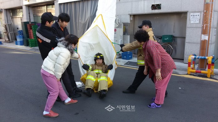 인천 부평소방서는 12일 삼산동에 위치한 '연세요양원'에서 관계자 등 20여명이 참여한 가운데 수직구조대를 활용한 실질적인 피난훈련을 실시했다. 사진은 소방서 관계자가 훈련을 진행 중인 모습.(사진제공=부평소방서)