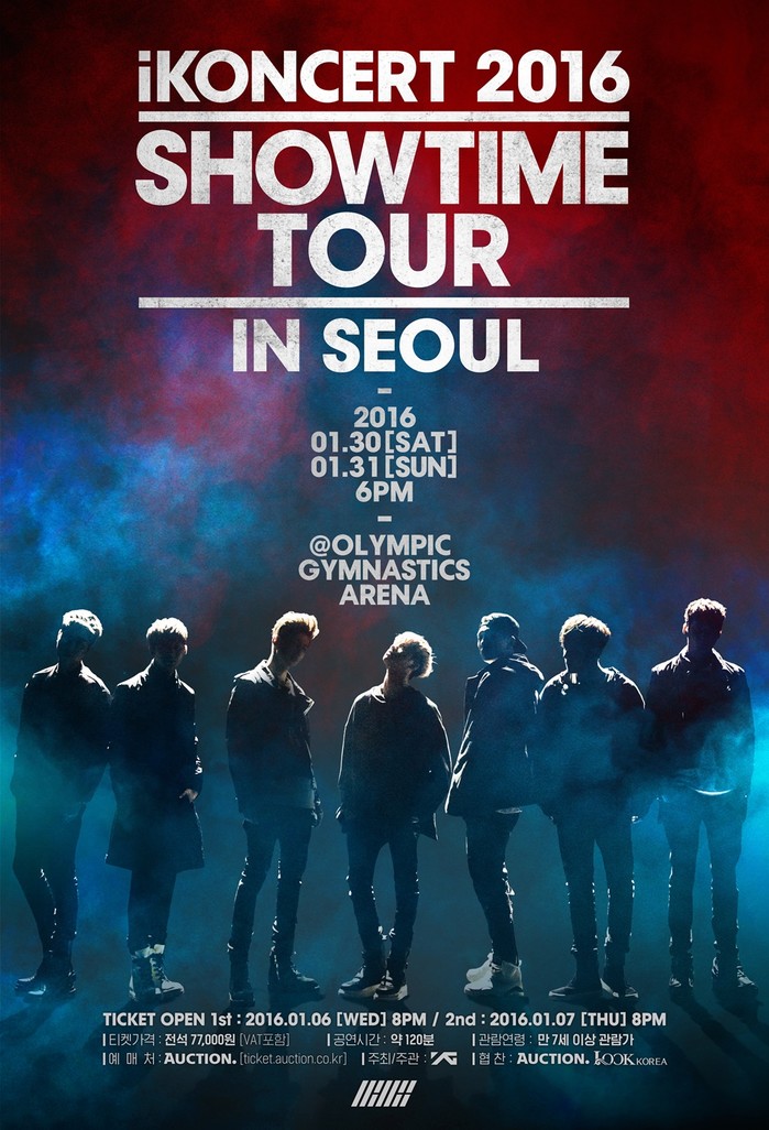 아이콘의 단독 콘서트 ‘iKONCERT 2016 SHOWTIME TOUR IN SEOUL’ 는 오는 30일, 31일 양일간 서울 올림픽 체조 경기장에서 개최된다.