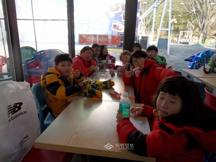 최근 경북 구미시 옥성초등학교 학생들은 겨울 체험학습 프로그램으로 금오산 눈썰매장을 찾아 마음껏 겨울을 만끽하며 즐거운 시간을 보냈다. 사진은 행사에 참석한 학생들이 휴식을 취하는 모습.(사진제공=구미교육지원청)