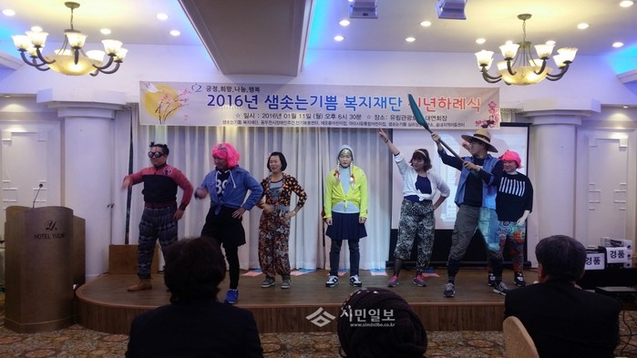 지난 11일 경기 동두천시 사회복지법인 샘솟는기쁨복지재단에서는 유림호텔 대연회장에서 '2016년 신년하례식'을 개최했다. 사진은 행사에 참석한 관계자들이 공연을 진행하는 모습.(사진제공=동두천시청)