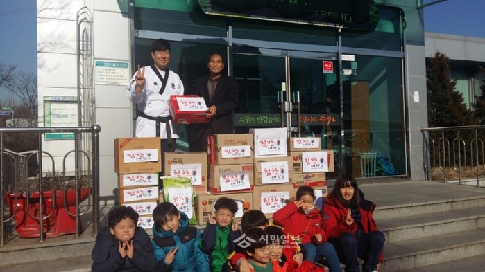 수원시 힘찬태권도장, 주민센터에 생필품 전달