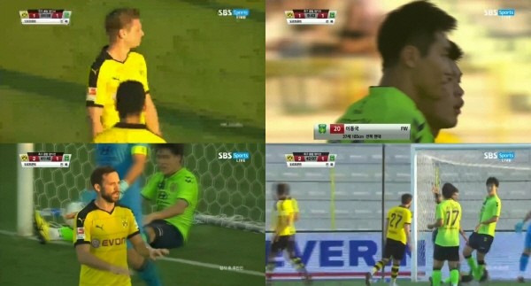이 경기는 SBS스포츠에서 오후 9시25분부터 생중계 되고 있으며, 전반전이 종료된 가운데 도르트문트가 2대 1로 전북에 앞서고 있다.