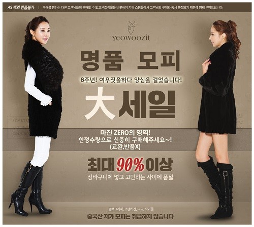 여우짓을 하다는 이번 이벤트를 통해 최대 80% 이상의 파격적인 할인 혜택을 제공하고 있어, 밍크코트에서부터 밍크베스트, 폭스베스트, 다양한 모피코트, 명품 수입 모피인 시메트리퍼 코트, 그리고 밍크 스킨 머플러 등 다양한 모피제품 등을 놀라운 가격에 만나볼 수 있다.