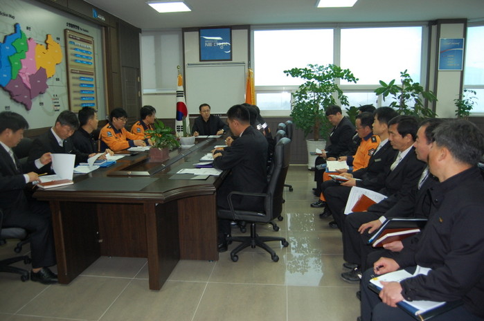 18일 경기 안성소방서는 소방서장 주재로 시민이 안전하고 행복한 안성맞춤 도시 구현에 역점을 둔 2016 업무보고회를 개최했다. 사진은 보고회에 참석한 관계자들이 회의를 하는 모습.(사진제공=안성소방서)