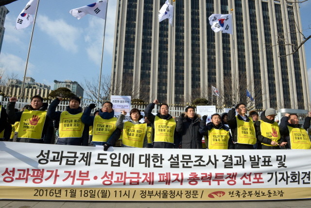 이날 전국공무원노동조합은 어떠한 형태의 성과평가도 전면 거부할 것이며 다음달 27일 '성과급제 폐지, 퇴출제 저지를 위한 공무원 총력투쟁대회'를 개최할 것이라고 밝혔다.