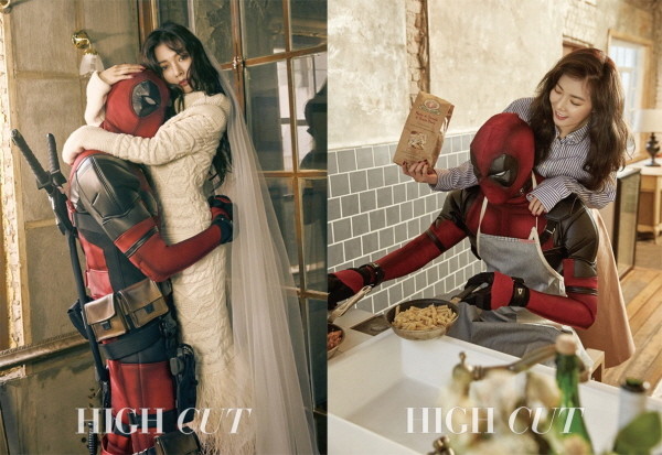 공개된 화보는 면사포를 쓴 아름다운 신부로 변신한 현아에게 안긴 데드풀과 그런 데드풀의 포근하게 감싸안은 현아의 모습을 통해 사랑에 빠진 연인 같은 분위기를 느낄 수 있다.