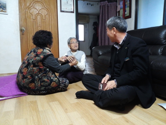 지난 19일 경기 여주시 흥천면은 지역내 거주하는 100세 이상 장수노인 4가구를 방문했다. 사진은 면 관계자들이 노인에게 건강과 안부를 확인하며 담소를 나누는 모습.(사진제공=여주시청)