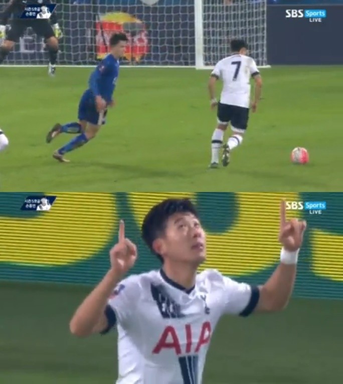 손흥민은 전반 39분 좌측 페널티 박스 공간을 파고들며 통쾌한 중거리 슛을 성공시켰다. 자신을 마크하던 수비수와 골키퍼도 속수무책으로 만들만큼 위력적인 슈팅이었다.