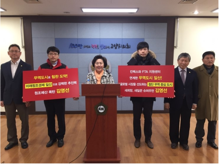 또한 김 후보는 "고양시의 1인당 지역내총생산(GRDP)은 경기도 31개 시·군 중 25위로 최하위 수준이며, 성장률도 경기도 평균을 크게 밑돌고 있다"고 지적한 뒤 "100만이 넘는 인구의 고양시는 경기도 1250만명 인구 중 10%에 가까운 비중을 차지하고 있지만, 수출액은 1%에도 미치지 못하는 게 현실"이라며 "고양시를 사람과 상품, 자본의 이동이 자유로운 국제 무역 도시로 조성해 경제 구조를 바꾸려는 체계적인 준비와 절실한 노력이 필요하다"고 설명했다.