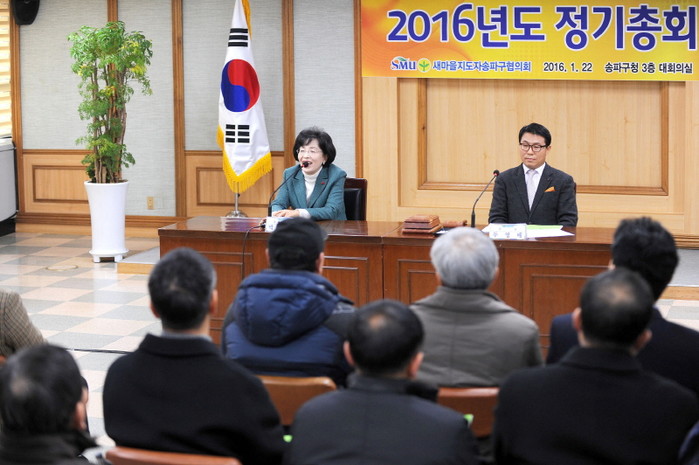 지난 22일 서울 송파구는 구청 대회의실에서 '새마을지도자송파구협의회 정기총회'를 진행했다. 사진은 행사에 참석한 박춘희 구청장이 인사말을 하는 모습.(사진제공=송파구청)