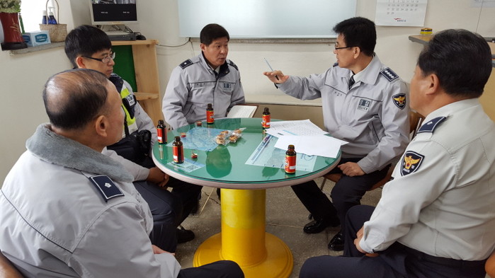 지난 21일 하용철 인천 강화경찰서장(오른쪽에서 두 번째)은 양사 파출소를 방문해 지역경찰관들의 노고를 격려했다. 하 서장은 오는 27일까지 서도파출소를 제외한 12개 파출소를 다니며 강화지역 치안여건을 파악할 예정이다.(사진제공=강화경찰서)