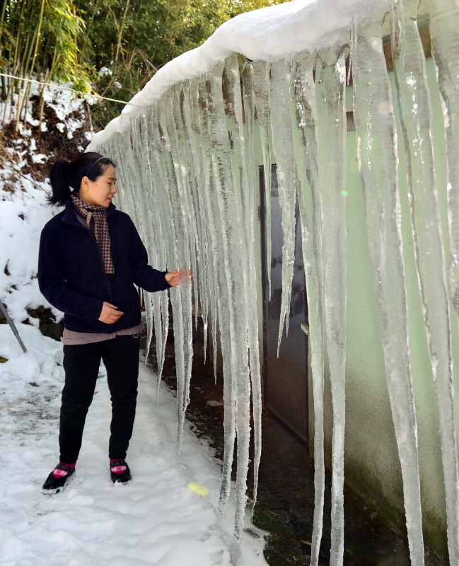 한파가 지속되고 있는 22일 오전 광주 남구 신장동의 한 주택의 지붕 처마에 어른 키만한 고드름이 매달려 추위를 실감케 하고 있다. /뉴시스