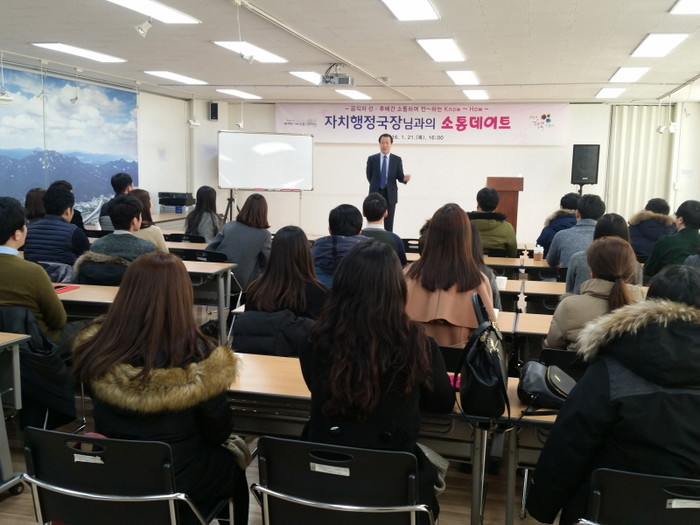 최근 경기 의정부시가 선후배 간의 유대를 돈독히 하고 자유로운 소통 문화를 조성하기 위해 '선배공무원과의 소통 데이트'를 진행했다. 사진은 이용린 자치행정국장이 공직생활의 경험담과 일화를 소개하는 모습.(사진제공=의정부시청)