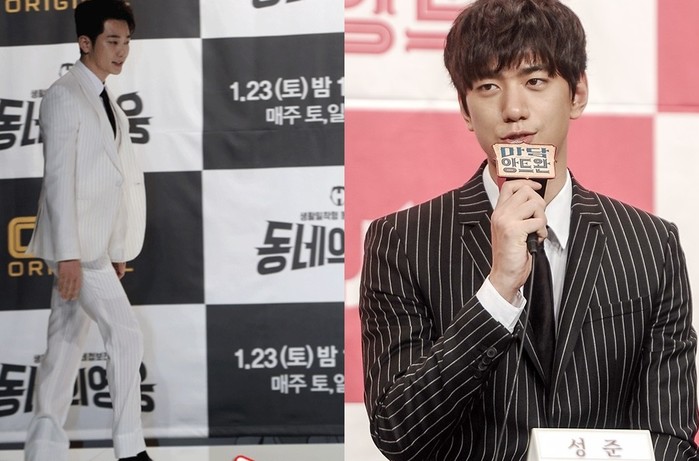배우 박시후와 성준이 상반된 수트 패션을 선보여 눈길을 끈다.