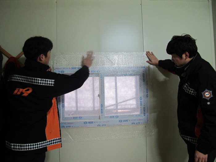 최근 경기 군포소방서는 겨울철 화재피해 감소를 위해 지역내 비닐하우스 16가구를 찾아 생활안전서비스를 제공했다. 사진은 소방서 관계자들이 방풍비닐을 설치하는 모습.(사진제공=군포소방서)