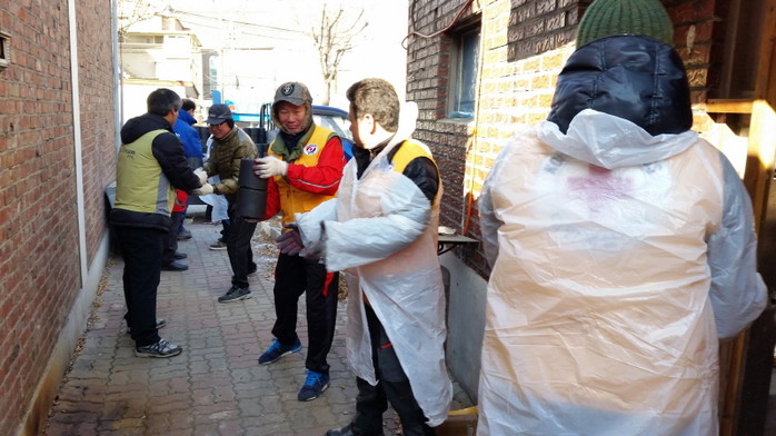 지난 23일 경기 동두천시 적십자이담봉사회 김명수 회장과 15명 회원들은 중앙동 어려운 이웃 4가구를 방문해 연탄 250장씩 1000장(50만원 상당)을 전달했다.(사진제공=동두천시청)