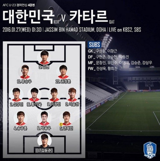 신태용 감독이 이끄는 올림픽축구 대표팀은 27일 오전 1시 30분(한국시간)에 카타르 도하 알사드 스타디움에서 카타르와 2016 아시아축구연맹(AFC) U-23 챔피언십 4강전 경기를 치른다.