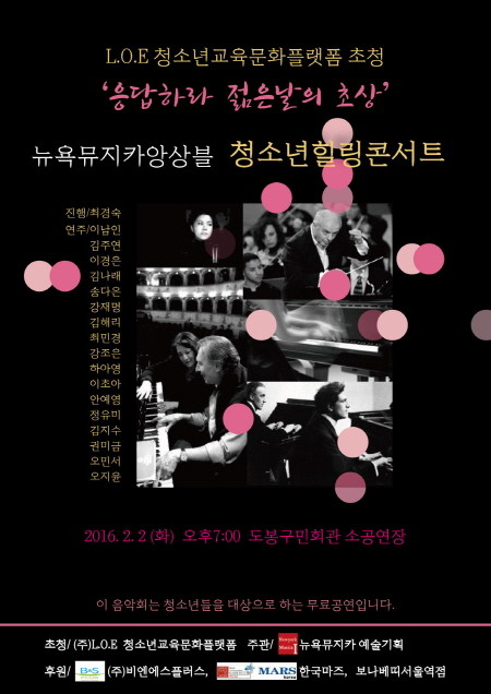이번 공연은 뉴욕뮤지카앙상블이 (주)L.O.E.청소년교육문화플랫폼의 초청을 받아 '응답하라 젊은날의 초상'이라는 부제로 무대에 오른다.