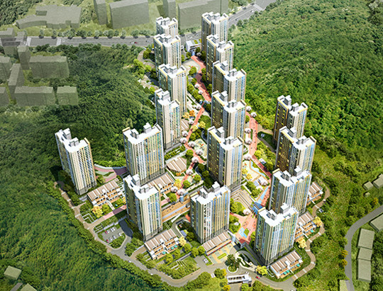 단지 좌우에는 청명산이 입지해 숲 조망은 물론, 등산로 이용 및 천혜의 자연공원을 내 집 앞마당처럼 이용할 수 있으며, 인근에 기흥 호수공원과 영동 체육문화센터, 태광CC 등이 위치하고 있다.
