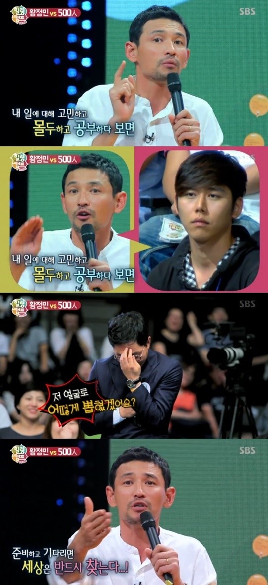또 황정민은 "나도 연극 할 때 연봉 300만원 받고 행복하게 일했다”며 "연기 하는 것 자체를 자랑스러워해야 한다. 그게 없으면 배우가 될 수 없다. 확신을 가지고 때를 기다리면 분명히 될 것이다"라고 진심을 전했다.