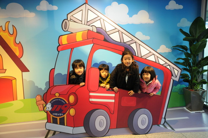 최근 서대문소방서는 '명지어린이집' 어린이들을 대상으로 '어린이안전교육'을 실시했다. 사진은 교육에 참석한 어린이들이 기념촬영을 하는 모습.(사진제공=서대문소방서)