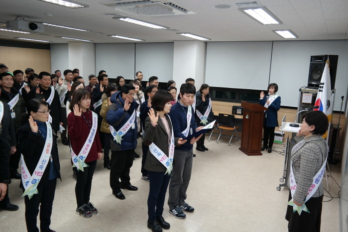 최근 은평구 보건소는 전직원이 참여하는 '신년인사회를 겸한 청렴실천 결의대회'를 개최했다. 사진은 행사에 참석한 직원들이 선서를 하는 모습.(사진제공=은평구청)