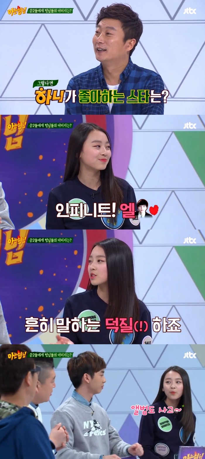 이밖에도 이수민은 "인피니트 엘 오빠가 좋다. 흔히 말하는 '덕질'을 하고 있다"고 밝혀 MC들의 귀여움을 독차지했다.