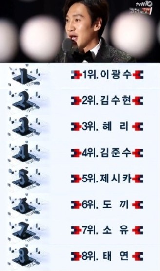 이날 공개된 명단은 모델 겸 배우로 활동 중인 이광수가 1위, 2위 에서 김수현, 3위 혜리 순 이었다.