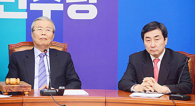 더불어민주당 김종인 비상대책위원장과 이종걸 원내대표가 1일 서울 여의도 국회에서 열린 비상대책위원회의에서 굳은 표정을 짓고 있다.