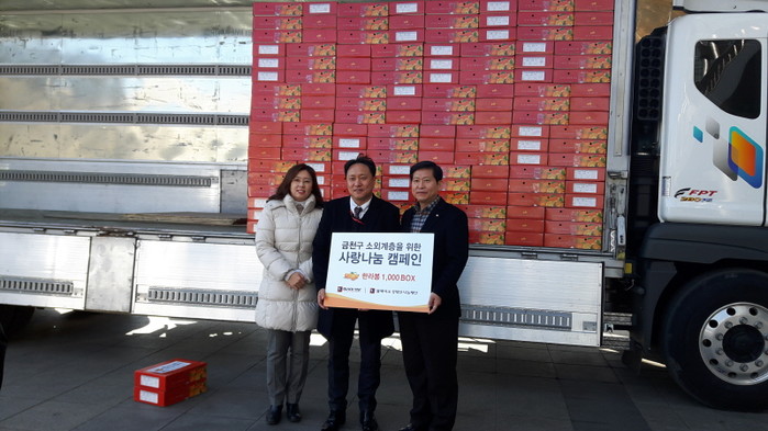 지난 2일 블랙야크강태선나눔재단은 지역내 어려운 이웃을 위해 사용해 달라며 3000만원 상당의 한라봉 1000상자를 서울 금천구에 전달했다. 사진은 관계자들이 기념촬영을 하는 모습.(사진제공=금천구청)