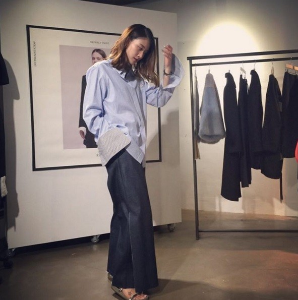 이현이는 공개된 사진 속에서 차분한 느낌의 네이비색 셔츠와 통이 넓은 팬츠를 입은 채 머리를 쓸어넘기고 있다. 이현이의 군살없는 몸매와 완벽한 비율이 어우러져 패셔니스타로서의 면모를 뽐내고있다.